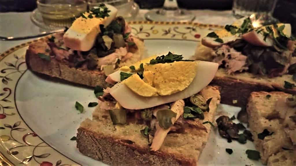 Καπνιστό σκουμπρί πάνω σε φρυγανισμένο ψωμί με αυγό, αγγουράκι τουρσί, κάππαρη, φρέσκο κρεμμυδάκι και μαϊντανό. Ένα από τα ωραιότερα κρύα ορεκτικά του menu στο «Belle Amie«, που ξέρει να μας μυήσει στο πώς «Μοιραζόμαστε γεύσεις», όπως είναι το moto του.