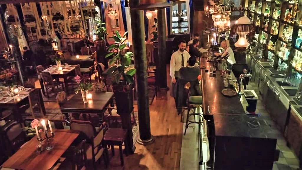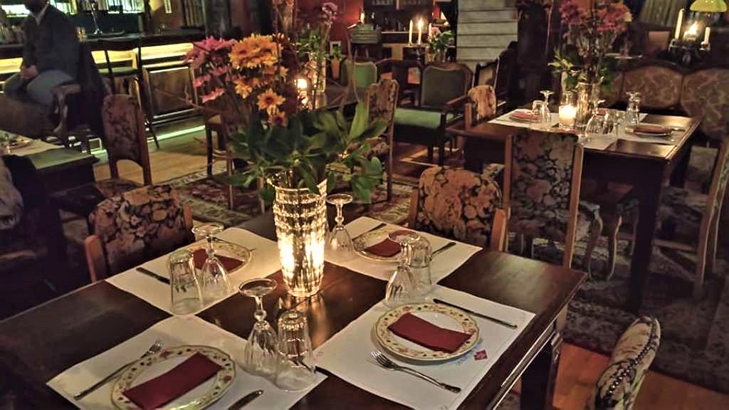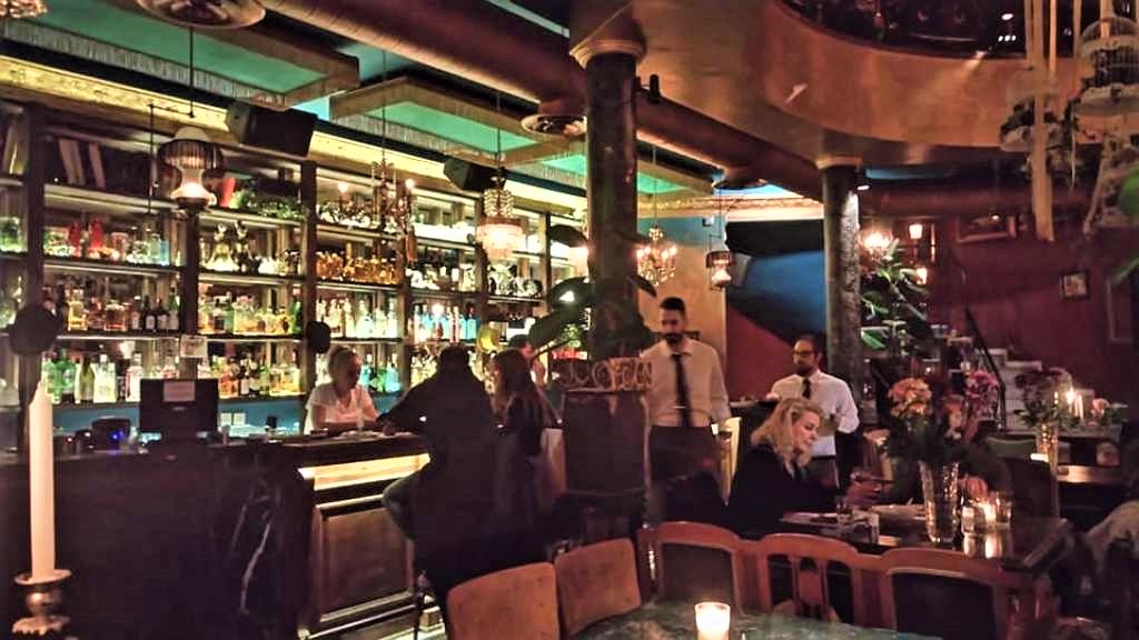 Όμορφα έπιπλα, καρέκλες και καναπεδάκια γύρω από τα τραπέζια, πράσινο και λουλούδια, καθρέφτες και κηροπήγια δημιουργούν μια ατμόσφαιρα οικείας θαλπωρής και πολυπολιτισμικότητας.