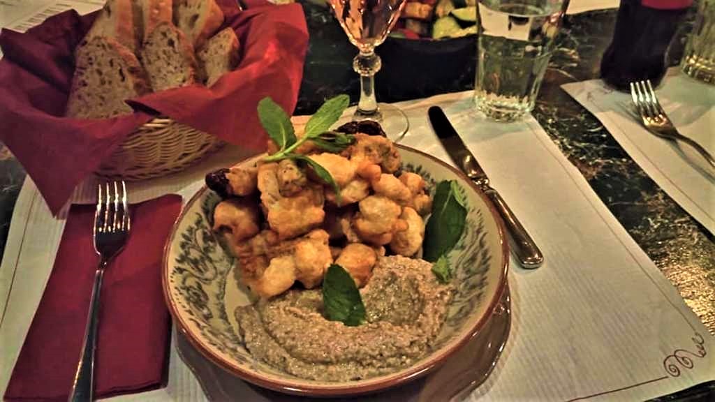 Γίγαντες τηγανητοί παντρεμένοι με λιαστές ντομάτες και συνοδευμένοι από σκορδαλιά με καρύδι και λευκό βαλσάμικο. Τραγανοί-τραγανοί και πεντανόστιμοι με σεβασμό, αλλά και μια δόση τσαχπινιάς, απέναντι στην παραδοσιακή συνταγή από την Δονούσα των Μικρών Κυκλάδων, όπου οι γίγαντες τηγανίζονται τυλιγμένοι στο κλασσικό κουρκούτι τους και συνοδεύονται με σκορδαλιά επίσης κλασσική, με ψωμί, όπου προστίθεται και φρέσκια ντοματούλα.