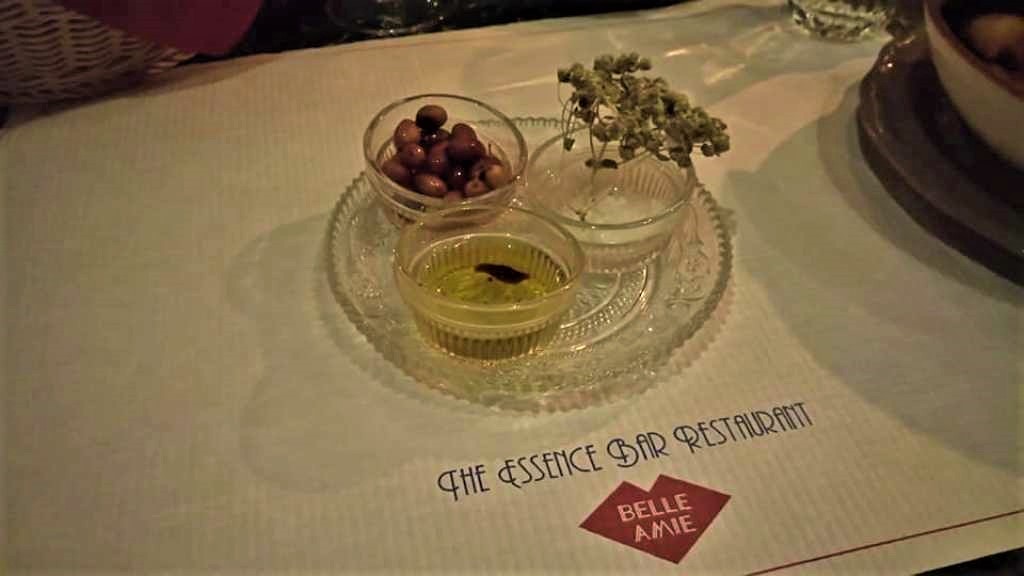 Ξεκίνημα του δείπνου με την άφιξη στο τραπέζι μας των …βασικών, αλλά πάντα καλύτερων, που αποτελούν και την πιο αλάνθαστη πυξίδα για το πού το πάει ο chef Marko Rossi! Έξτρα παρθένο ελαιόλαδο με ελιές Κρήτης, ανθός αλατιού και ρίγανη και φυσικά προζυμένιο ψωμάκι για να τα συνοδεύσει.