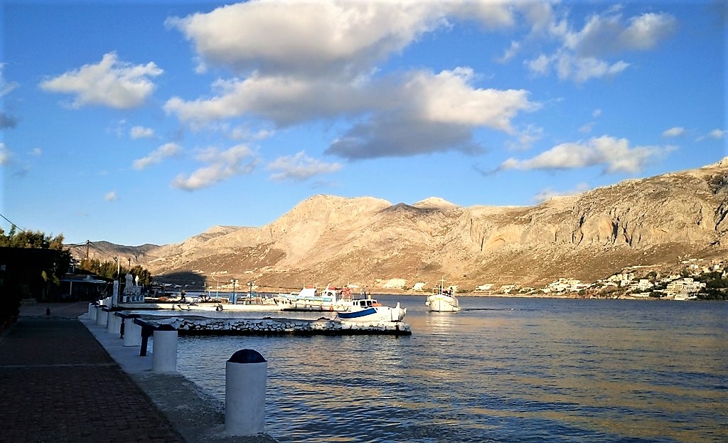 Στους ρυθμούς του λευκού και του γαλάζιου πάντα με φόντο το γκρι των γυμνών καλύμνικων βουνών.