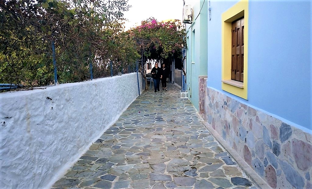 Ένα όμορφο λιθόστρωτο δρομάκι, ιδανικό για αξέχαστη βόλτα δίπλα στην θάλασσα, οδηγεί βόρεια του οικισμού…