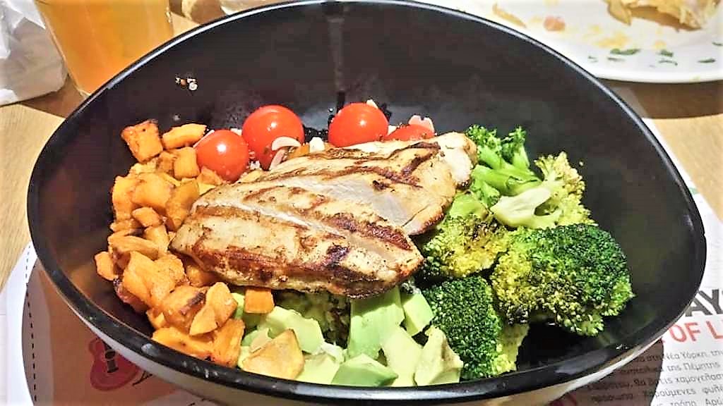 Στην ίδια λογική και το Ginger Green Bowl, μια πραγματικά superfood πρόταση που περιέχει ζεστή τρίχρωμη κινόα και μπρόκολο στη σχάρα, αβοκάντο, καβουρδισμένα αμύγδαλα, φρέσκια μέντα, μαριναρισμένα ψητά ντοματίνια, φύλλα γαλλικής σαλάτας, γλυκοπατάτα και ginger dressing, αλλά και κοτόπουλο ανάλογα με την επιθυμία του πελάτη.