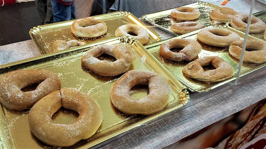 Ciambelle, τα ιταλικά ντόνατς ή οι λουκουμάδες αν προτιμάται, που κυκλοφορούν σε διάφορες τοπικές παραλλαγές ως προς τα συστατικά και την προετοιμασία. Η βασική συνταγή τους περιλαμβάνει αλεύρι, μπέικιν πάουντερ, αλάτι, αυγά, γάλα ή κρέμα, ζάχαρη, λάδι και αρώματα βανίλιας, ενώ το μέλι ή η ζάχαρη προστίθενται κατά το σερβίρισμα ως γλυκαντικό.
