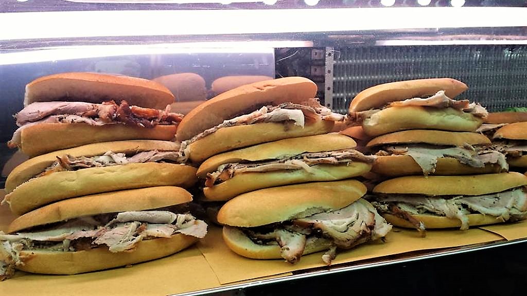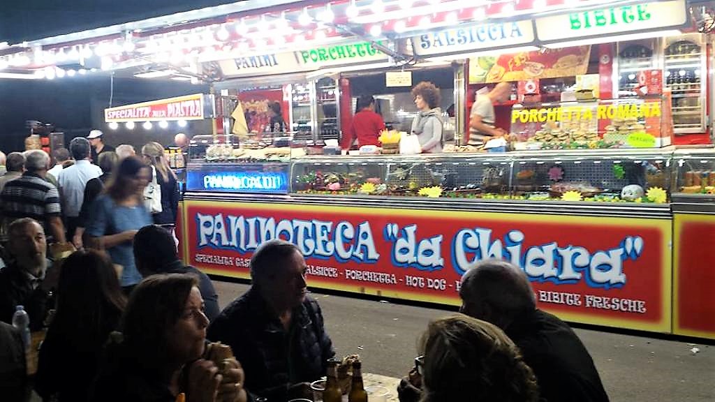Μία χαρακτηριστική paninoteca -κατάστημα που πουλά panini-, που σέβεται τον εαυτό της δεν μπορέι παρά να προβάλλει ως «πρώτα βιολιά» της την porchetta και τα salsicia.