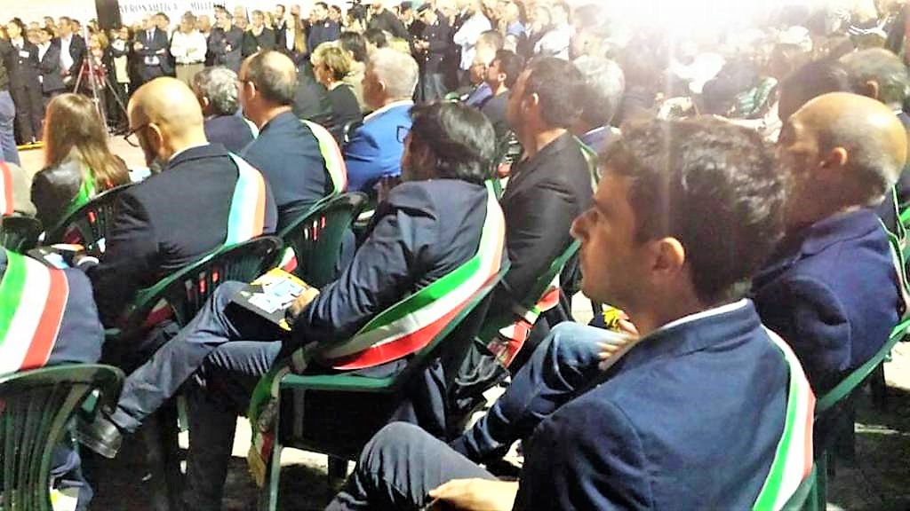 Οι επίσημοι προσκεκλημένοι στην πρώτη σειρά των καθισμάτων, ως είθισται. Από αριστερά ο Δήμαρχος του Δήμου Miggiano Michele Sperti, ο Πρόεδρος της Regione (Περιφέρεια) Puglia Michele Emiliano και στην τέταρτη θέση ο Πρόεδρος της Provincia (Επαρχία) di Lecce Stefano Minerva. Παρέστησαν ακόμα η Loredana Capone, Σύμβουλος για τον τουρισμό και την πολιτιστική βιομηχανία της περιοχής της Απουλίας, η Maria Antonietta Mancarella, Δημοτική Σύμβουλος υπεύθυνη για την διοργάνωση εκθέσεων, ο Angelo Mancarella, Δημοτικός Σύμβουλος υπεύθυνος για θέματα Πολιτισμού και πολλοί ακόμα εκπρόσωποι τοπικών φορεών και συλλογικοτήτων.