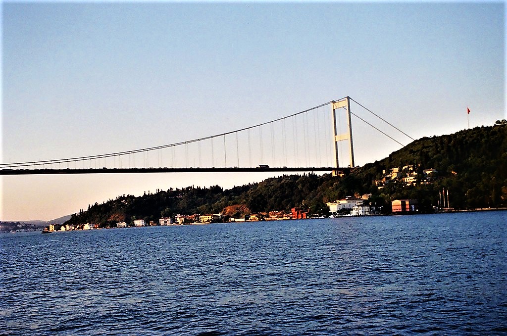 …περίφημη Γέφυρα του Βοσπόρου, η οποία, όταν ολοκληρώθηκε το 1973, ήταν η 4η μεγαλύτερη σε μήκος κρεμαστή γέφυρα στο κόσμο και η μεγαλύτερη έξω από τις ΗΠΑ. Σήμερα είναι η 19η μεγαλύτερη.