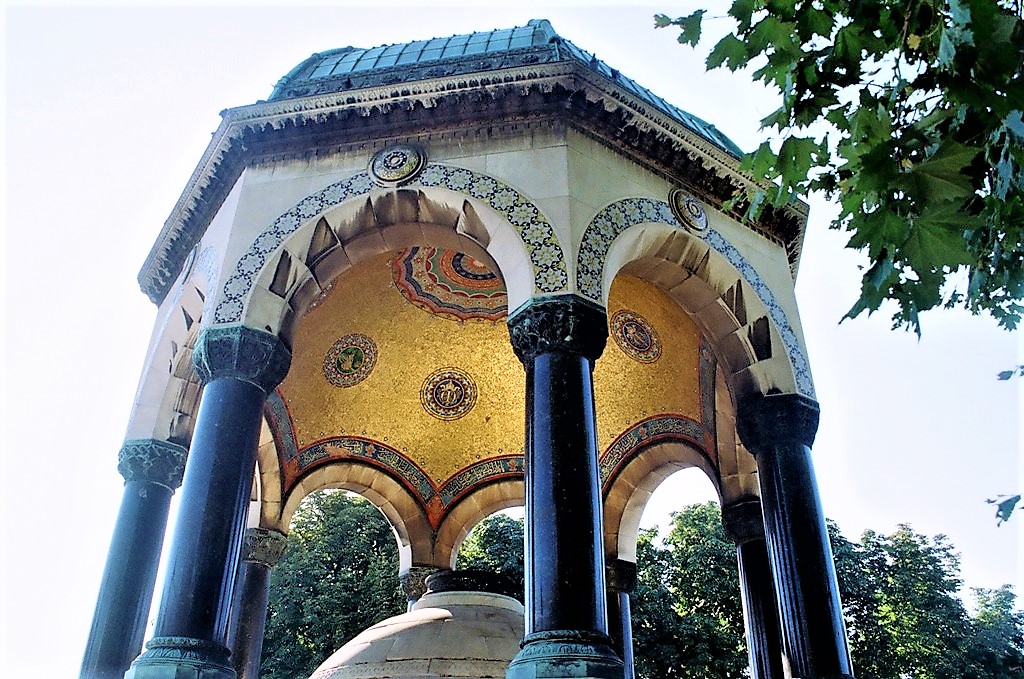 Το στυλάτο γερμανικό συντριβάνι, στην βόρεια άκρη του παλιού Ιπποδρομίου και σε απόσταση αναπνοής από το Μπλε Τζαμί, κατασκευάστηκε προκειμένου να σηματοδοτήσει την πρώτη επέτειο από την επίσκεψη του Γερμανού Αυτοκράτορα Βίλχελμ του Β΄ στην Κωνσταντινούπολη, το έτος 1898. Προετοιμάστηκε στην Γερμανία και έπειτα μεταφέρθηκε κομμάτι-κομμάτι στην Κωνσταντινούπολη, όπου και τοποθετήθηκε στην σημερινή του θέση το έτος 1900.