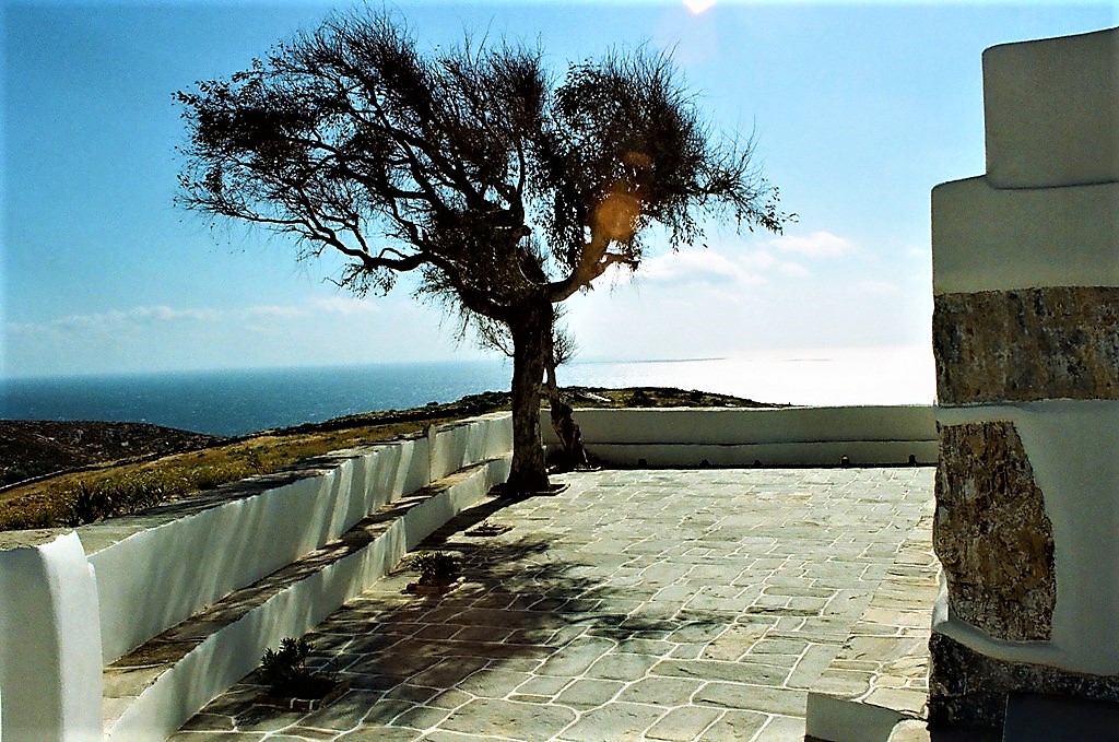 …συνδιαλεγόμενο αέναα με την θάλασσα, τις ελιές και τις αναβαθμίδες, που συγκρατούν το λιγοστό πολύτιμο έδαφος του νησιού.
