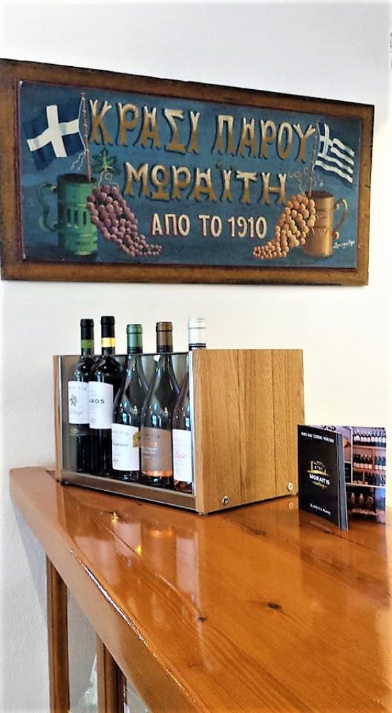 Τέλος, επισκεφθήκαμε το Οινοποιείο Ε.Θ. Μωραΐτη, το οποίο ιδρύθηκε στην Νάουσα της Πάρου το 1910, από τον Εμμανουήλ Μωραϊτη, παππού του σημερινού συνεχιστή της οικογενειακής παράδοσης. Εκείνος καλλιεργούσε δικά του αμπέλια, ενώ παράλληλα συγκέντρωνε και οινοποιούσε σταφύλια απ΄ όλο το νησί. Με δικό του καΐκι, την εποχή εκείνη, μεταφέρονταν τα ονομαστά για το βαθυκόκκινο χρώμα τους παριανά κρασιά, σε όλες τις περιοχές της Ελλάδας.