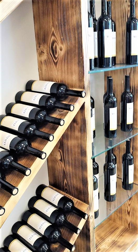 Το κατακόκκινο χρώμα των τοίχων του μικρού αυτού κελαριού, μαρτυρά αδιάψευστα ότι ξεκίνησε την ιστορία του ως μία από τις δεξαμενές κρασιού του αρχικού Οινοποιείου.