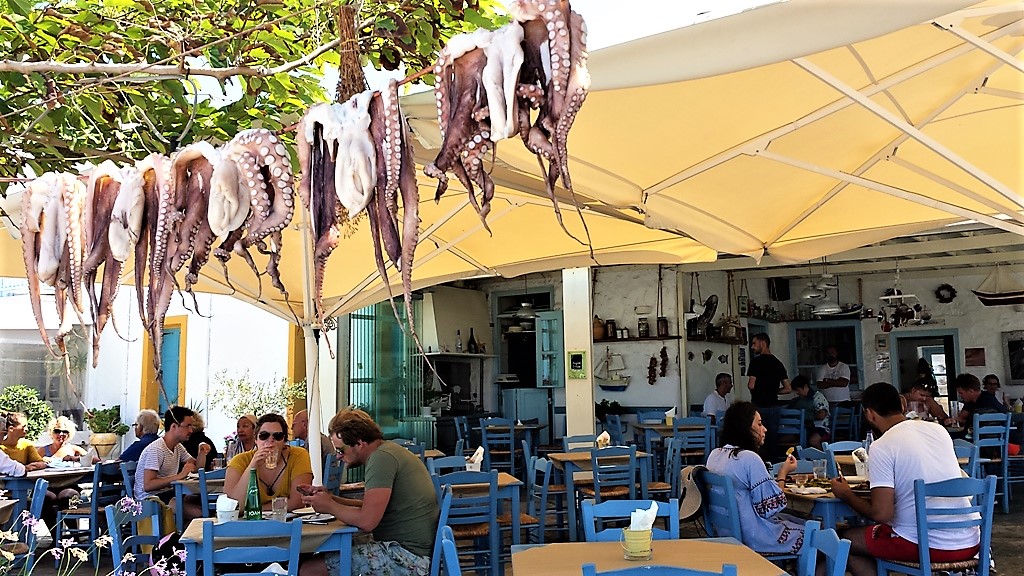 Τα λιαστά χταποδάκια, βρώσιμα έργα τέχνης κι αυτά, διακοσμούν τον χώρο και συγχρόνως τέρπουν τους ουρανίσκους των φανατικών θαμώνων του «Mediterraneo»!
