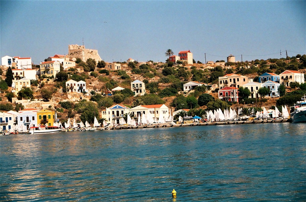 Το Καστελλόριζο και οι κουκλίστικοι οικισμοί του, το λιμάνι, τα Χωράφια και το Μαντράκι ατενίζουν τις ακτές της Τουρκίας και την παραλιακή πόλη Κας, ενώ τα σκάφη που αράζουν εδώ μοιάζουν με γλάρους που κολυμπούν στα ήρεμα νερά, μεταξύ δύο χωρών, για να μην πω δύο -ή σωστότερα τριών- ηπείρων.