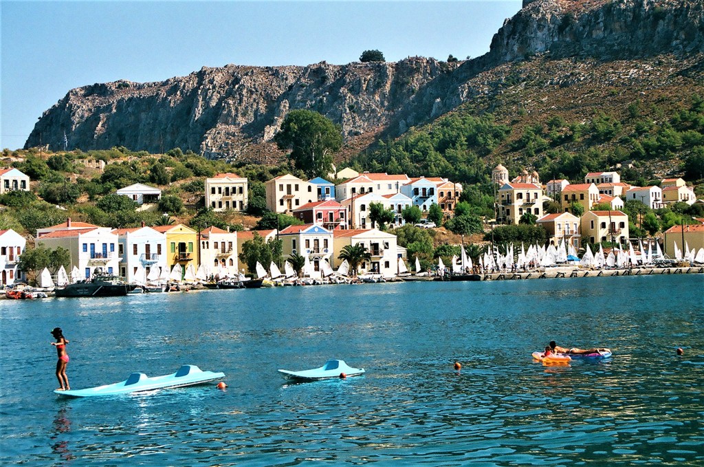 Ο γραφικός οικισμός του Καστελλόριζου και πίσω του το «Βουνό».