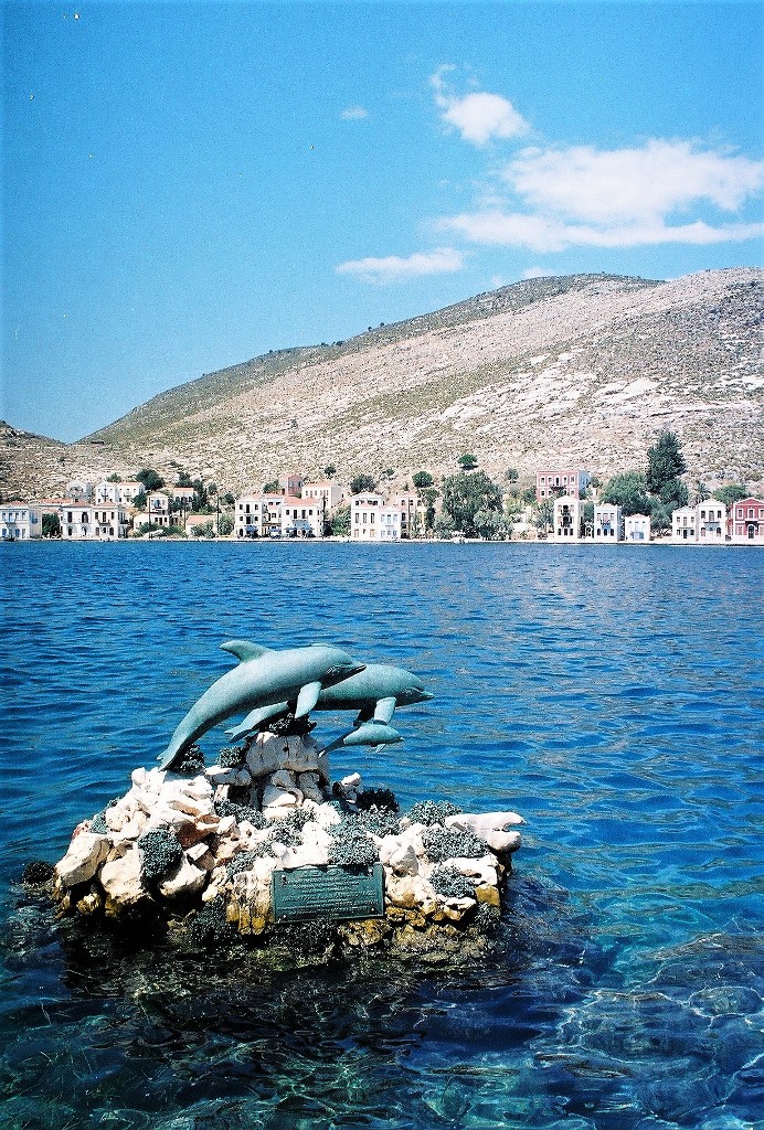 Τα χαρακτηριστικά δελφίνια, δώρο του Δημήτρη Αβραμόπουλου, ως Δημάρχου Αθηναίων, προς τον Δήμο Μεγίαστης, αποτελούν σήμερα ένα από τα χαρακτηριστικότερα σημεία του Καστελλόριζου.