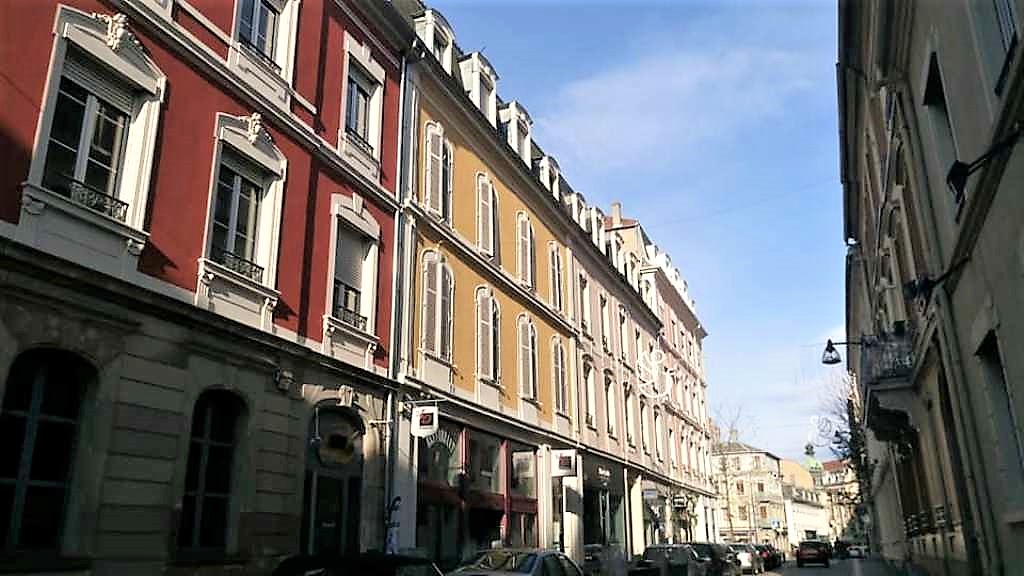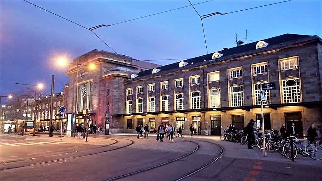 Πλησιάζοντας προς την περιοχή του κεντρικού σιδηροδρομικού σταθμού της πόλης απολαμβάνουμε τις αντανακλάσεις της στα νερά των ποταμών που την διασχίζουν, του Ιll και του Doller.