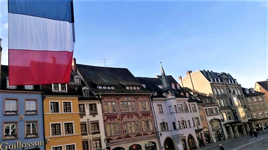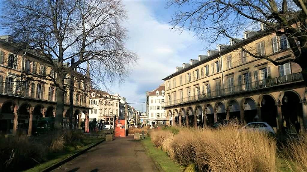 Eισερχόμεθα πλέον στην εμβληματική Place de la Réunion (Πλατεία της Επανένωσης), την μεγάλη κεντρική πλατεία στην καρδιά του ιστορικού κέντρου της Mulhouse, που συνορεύει με πολλούς εμπορικούς δρόμους, όπως η rue du Sauvage, Mercière, de la Lanterne και Henriette, καθώς και την πλατεία Lambert. Ο όρος «Reunion» αναφέρεται στο ιστορικό επεισόδιο της επανένωσης της Δημοκρατίας της Mulhouse με την Γαλλική Δημοκρατία στις 15 Μαρτίου 1798.