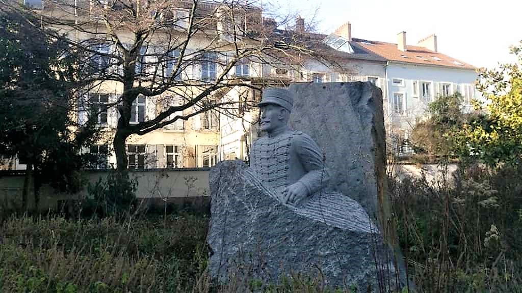 Το άγαλμα του Alfred Dreyfus (1859 – 1935) στην πλατεία Steinbach. Ο εβραϊκής καταγωγής Dreyfus, το πλέον διάσημο τέκνο της Mulhouse, ήταν αξιωματικός πυροβολικού, του οποίου η δίκη και η καταδίκη το 1894, για κατηγορίες προδοσίας, έγινε ένα από τα πιο αμφιλεγόμενα πολιτικά δράματα στην σύγχρονη γαλλική ιστορία. Η περίφημη υπόθεση Dreyfus, οι επιπτώσεις της οποίας έγιναν αισθητές σε όλη την Ευρώπη, κατέληξε τελικά στην πλήρη απαλλαγή του Dreyfus.