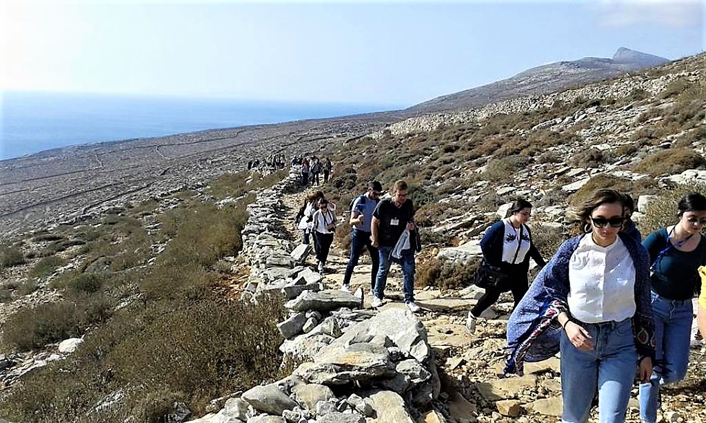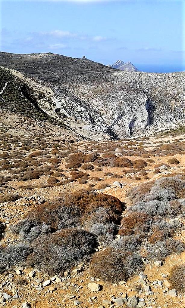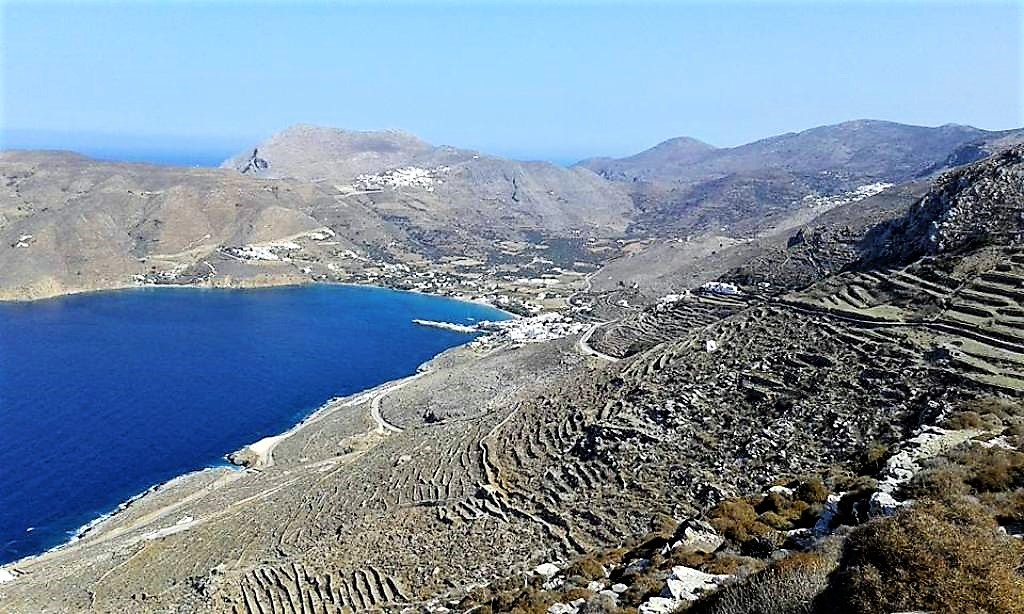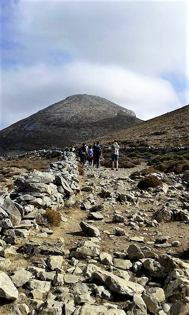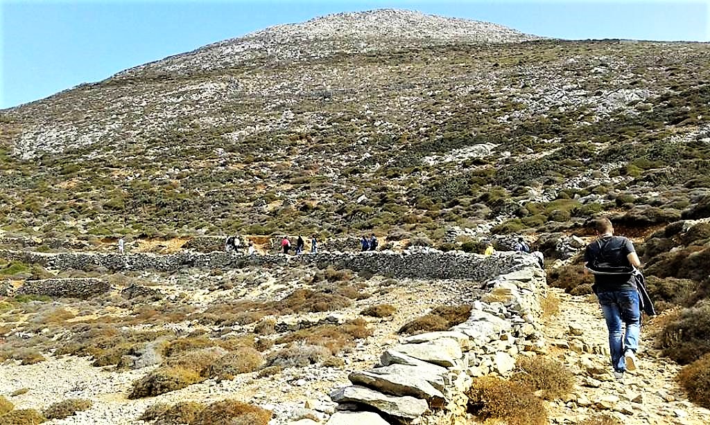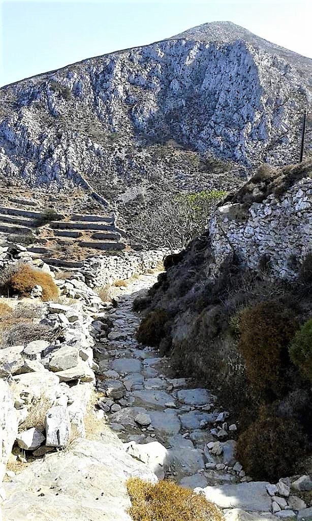 Λίθινο καλντερίμι, πεζούλες καλλιεργήσιμης γης και γυμνά, απόκρημνα βράχια! Είναι βέβαιο, βρισκόμαστε στις Κυκλάδες!