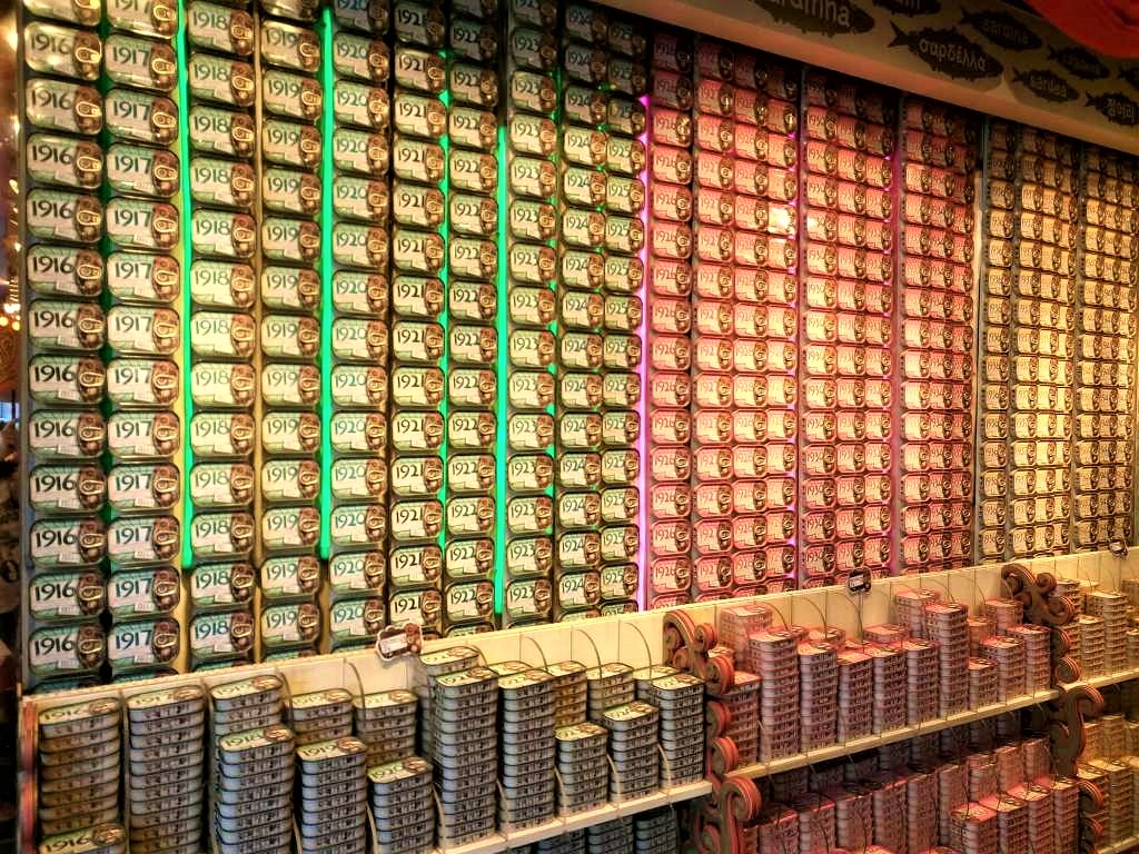 Όταν το πάθος για κονσέρβες γίνεται συλλεκτικό! Εδώ εκατοντάδες κονσερβοκούτια με χρονολογίες γεννήσεων, που ξεκινούν από το 1916, στο κατάστημα Sardinha Portuguesa, στην πλατεία Rossio της Λισαβώνας. Να σημειώσουμε ότι οι κονσέρβες ψαρικών αποτελούν εθνικό προϊόν για την Πορτογαλία.