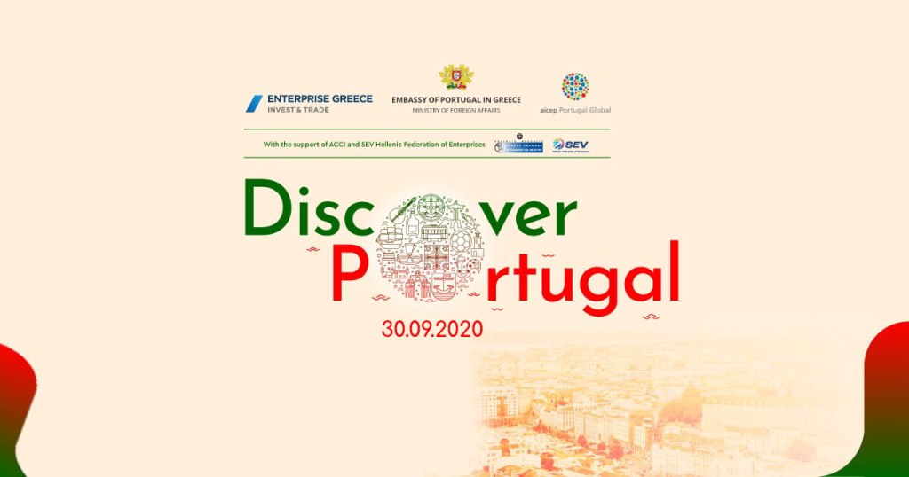 Με μεγάλη επιτυχία πραγματοποιήθηκε στις 30 Σεπτεμβρίου η διαδικτυακή εκδήλωση «Discover Portugal», που διοργάνωσε η Ελληνική Εταιρεία Επενδύσεων και Εξωτερικού Εμπορίου (Enterprise Greece) -ο αρμόδιος εθνικός φορέας, υπό την εποπτεία του Υπουργείου Εξωτερικών, για την προσέλκυση επενδύσεων στην Ελλάδα και την προώθηση των εξαγωγών-, η Πρεσβεία της Πορτογαλίας στην Αθήνα και o Πορτογαλικός Οργανισμός Επενδύσεων και Εξωτερικού Εμπορίου (AICEP), στο πλαίσιο της επίσημης επίσκεψης του Υφυπουργού Εξωτερικών της Πορτογαλίας Eurico Brilhante Dias. Στην εκδήλωση συμμετείχαν 45 ελληνικές εταιρείες και θεσμικοί φορείς από την Ελλάδα. Την εκδήλωση προλόγισαν ο Γενικός Γραμματέας Διεθνών Οικονομικών Σχέσεων & Εξωστρέφειας του Υπουργείου Εξωτερικών και Πρόεδρος της Enterprise Greece Γρηγόρης Δημητριάδης και η Πρέσβειρα της Πορτογαλίας στην Ελλάδα Helena Paiva.