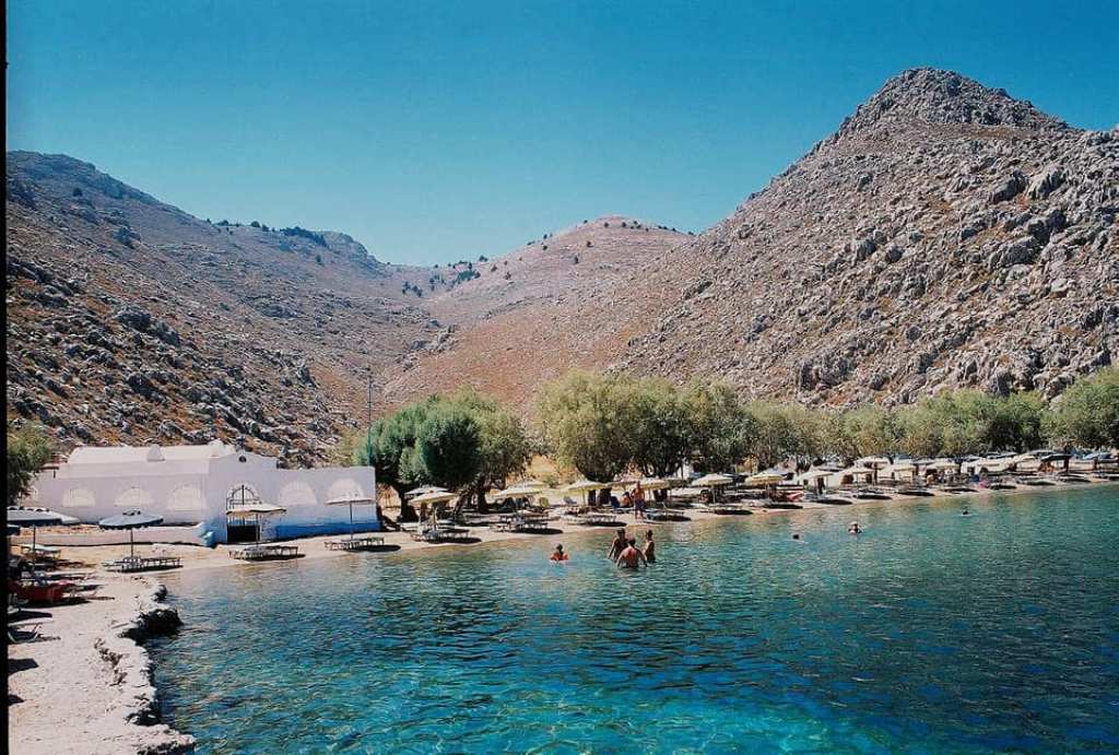 …μιας από τις ομορφότερες του νησιού και από τις λίγες προσβάσιμες με αυτοκίνητο, με κρυστάλλινα γαλαζοπράσινα νερά .