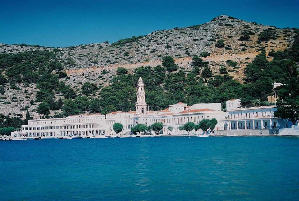 Η επιβλητική Μονή του Ταξιάρχη Μιχαήλ του Πανορμίτη.