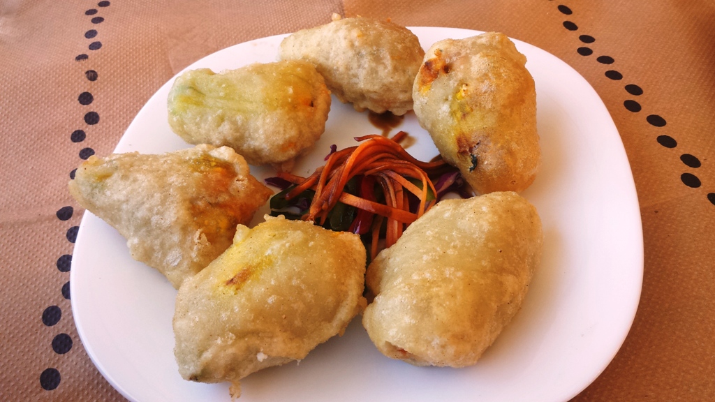 Κολοκυθοανθοί τηγανητοί με κουρκούτι και «καρδιά» από λαχταριστά λειωμένα τυράκια.