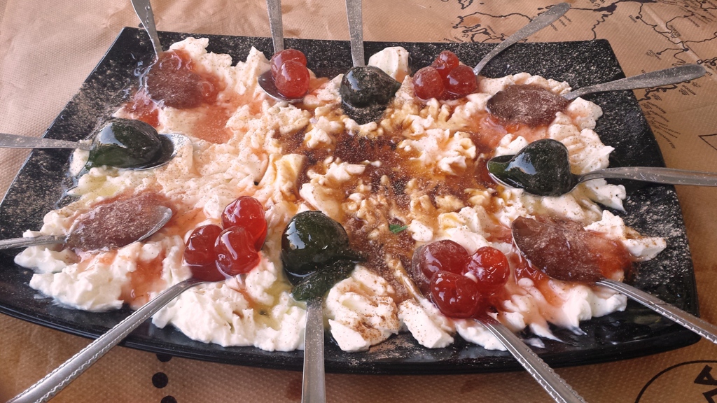 Και για το τέλος γιαουρτάκι με ποικιλία χιώτικων γλυκών του κουταλιού. Το απλούστερο και συγχρόνως τελειότερο φινάλε ενός τέτοιου γεύματος, που επίσης ήταν τέλειο μέσα στην απλότητά του.