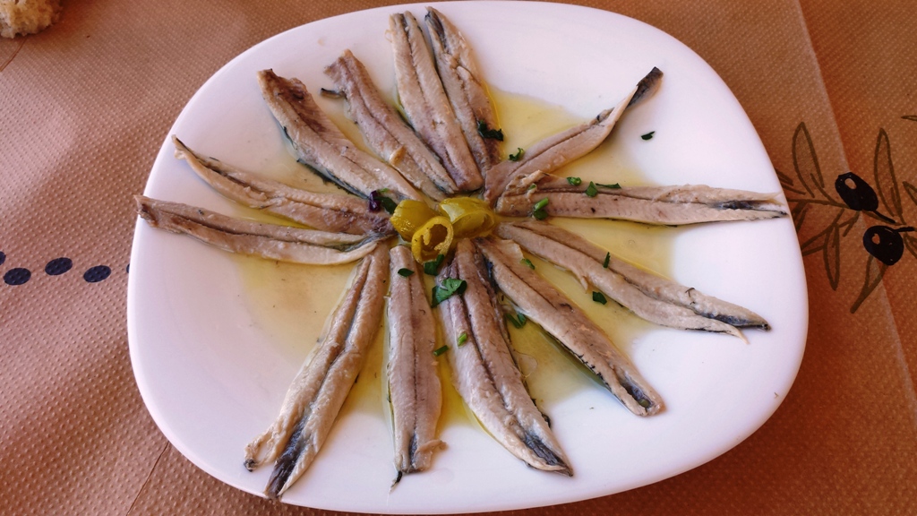 Αρχή με γαύρο μαρινάτο, τον ιδανικότερο σύντροφο για το ντόπιο ουζάκι μας και για την συνέχεια…