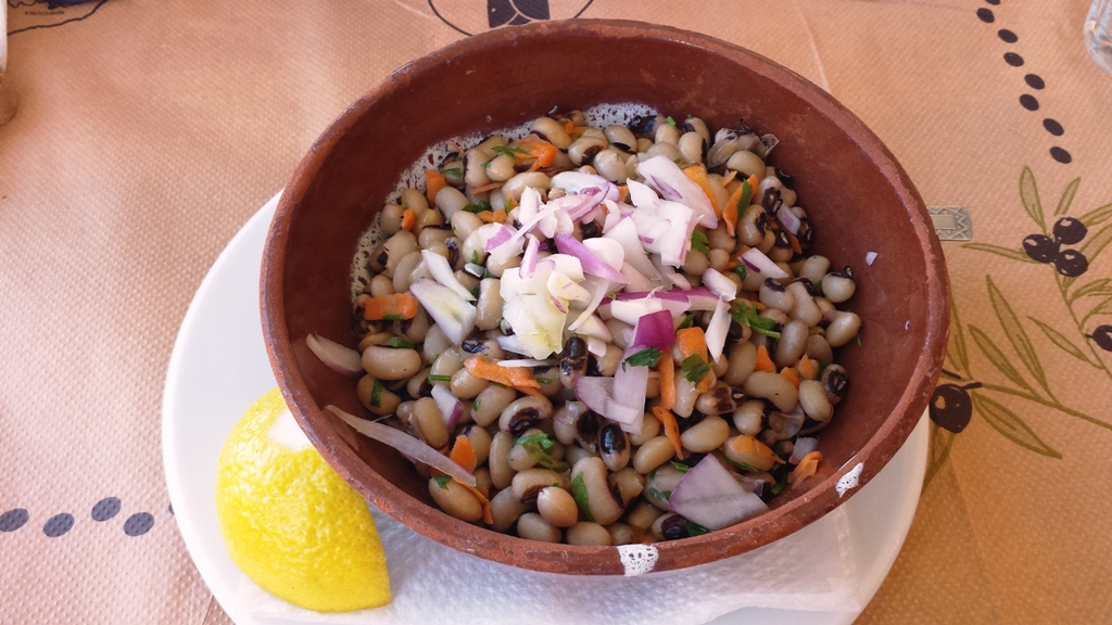 Σαλάτα με μαυρομάτικα φασόλια, φρέσκα μυρωδικά και βινεγκρέτ λεμονιού.