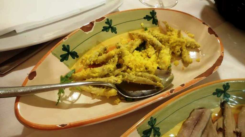 Για την συνέχεια scapece, μία παραδοσιακή συνταγή της ευρύτερης περιοχής της Gallipoli, που παρασκευάζεται με μικρά ψαράκια (pesce azzuro) τηγανητά, ξύδι, λίγο σαφράν -στο οποίο προφανώς οφείλεται και το κίτρινο χρώμα του- και ψίχουλα ψωμιού. Τόσο απλό και τόσο θεϊκά νόστιμο!