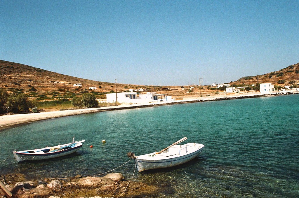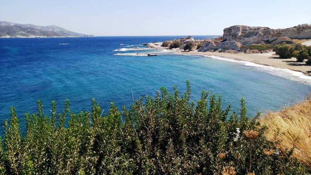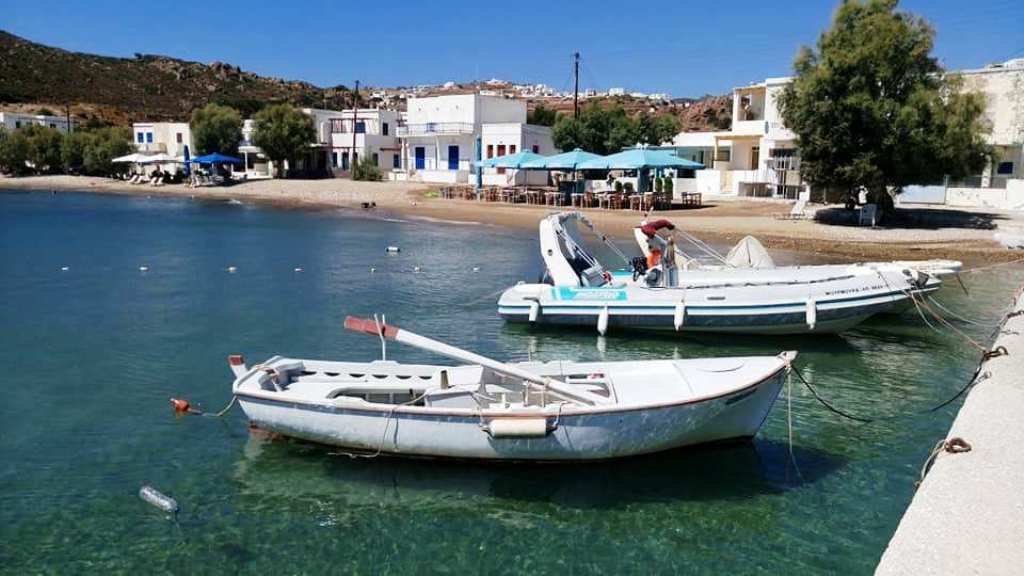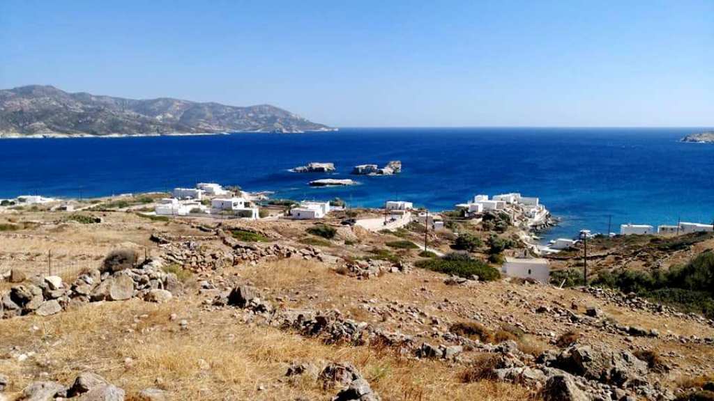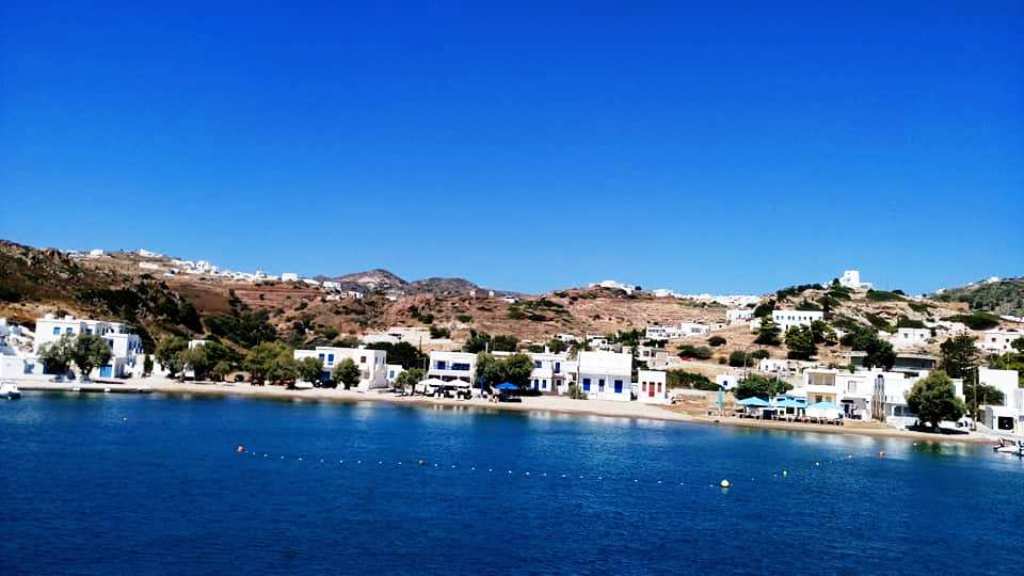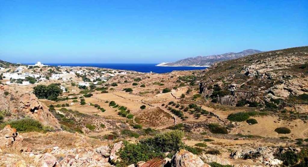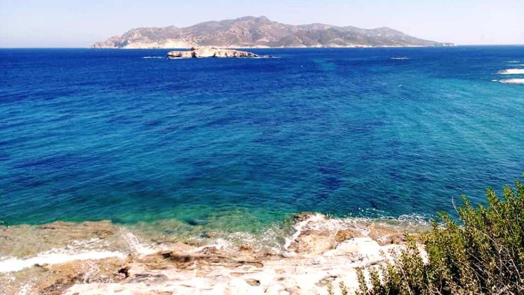 Η Ψάθη και στο βάθος η Πολύαιγος, ένα από τα μεγαλύτερα ακατοίκητα -αλλά και πανέμορφα- νησιά του Αιγαίου.