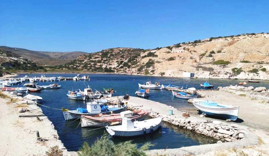 Το απάνεμο λιμανάκι του Αγίου Μηνά με την παλιά σκάλα φορτώσεως σιδηρομαγγανίου.