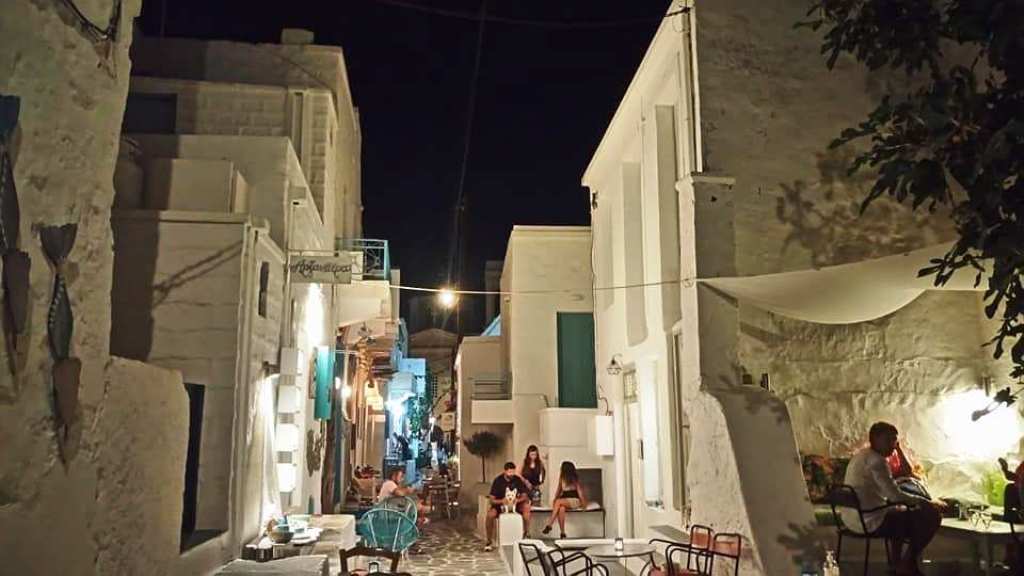 Τα δρομάκια και οι πλατειούλες του Χωριού βρίθουν από ενδιαφέροντες χώρους για καφέ, γλυκό ή φαγητό, αλλά και μικρά κομψά καταστήματα, αποτελώντας το πιο ζωντανό μέρος του νησιού όταν η μέρα παραδώσει την σκυτάλη στην νύχτα.