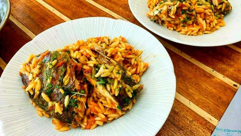 Αποκορύφωμα του γεύματος αυτού υπήρξε το κριθαρώτο με χειροποίητο κριθαράκι -όπως «σπιτικά» είναι και όλα τα υπόλοιπα ζυμαρικά, που συμπεριλαμβάνονται στο χειμερινό menu του εστιατορίου- και φαγκρί. Ένα ψάρι που ακόμα και ο χαρακτηρισμός «ολόφρεσκο» το αδικεί, μιας και κολυμπούσε αποδεδειγμένα μόλις λίγες ώρες πριν το απολαύσουμε!
