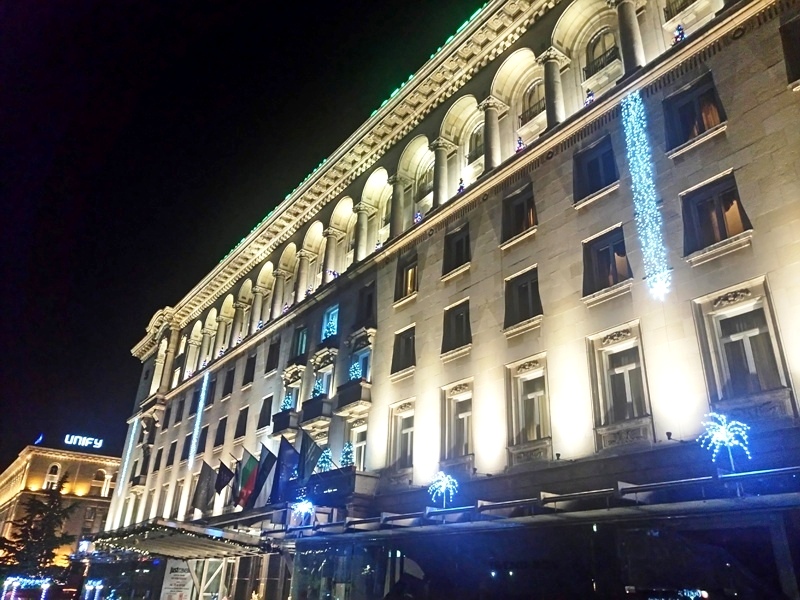 Στο κτηριακό συγκρότημα του Προεδρικού Μεγάρου, που κατασκευάστηκε το 1956, ανήκει, όπως ήδη αναφέραμε και το εμβληματικό ξενοδοχείο Sofia Hotel Balkan, a Luxury Collection Hotel, το οποίο τη νύχτα είναι ακόμα πιο εντυπωσιακό και μεγαλόπρεπο.