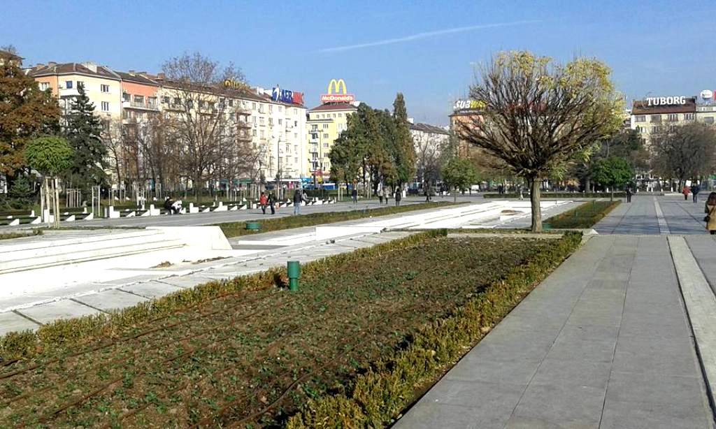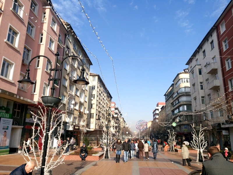 …η οποία αμέσως μετά το τέλος της πλατείας εξελίσσεται στον κεντρικότερο εμπορικό δρόμο, στην καρδιά της πόλης της Σόφιας.