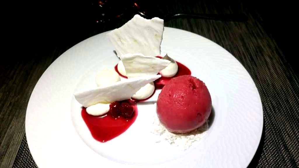 Αποδομημένη πάβλοβα με μαρέγκα, κρέμα λευκής σοκολάτας, mousse γιαούρτι και sorbet αγριοκέρασο. Η δική μου επιλογή για την ολοκλήρωση ενός αξέχαστου δείπνου με θέα!
