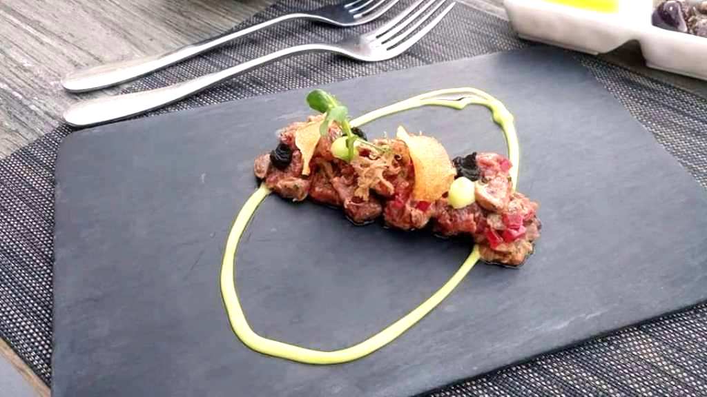 Tartare αρνί με μαύρο σκόρδο, μανιτάρι τουρσί και μαγιονέζα μαϊντανού. Ένας εξαιρετικός όσο και τολμηρός γευστικά συνδυασμός, που συνοδεύτηκε ιδανικά με Ξινόμαυρο Ροζέ από το «Κτήμα Γεροβασιλείου».