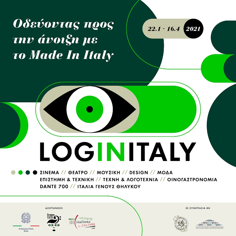 Το LogInItaly είναι ένα πρωτοπόρο διαδικτυακό αφιέρωμα με δράσεις από διάφορους τομείς του ιταλικού πολιτισμού, που διοργανώνεται από την Πρεσβεία της Ιταλίας στην Ελλάδα και το Ιταλικό Μορφωτικό Ινστιτούτο. Στο πλαίσιο αυτό, από τις 22 Ιανουαρίου έως και τις 16 Απριλίου 2021, το ελληνικό κοινό καθώς και οι Ιταλοί που βρίσκονται στην Ελλάδα, θα μπορούν να επισκέπτονται μια online πλατφόρμα, η οποία κατασκευάστηκε με σκοπό να προσφέρει μεγάλη ποικιλία πολιτιστικών εκδηλώσεων, που θα ανανεώνονται συνεχώς. Από τον κινηματογράφο έως την μουσική, από το design ως την μόδα, από το θέατρο έως την επιστήμη, από την οινογνωσία και την γαστρονομία ως την τέχνη και την λογοτεχνία, το κοινό θα έχει την δυνατότητα να ακολουθεί διάφορες διαδρομές για να γνωρίσει και να εμβαθύνει στις πολύπλευρες εκφάνσεις του ιταλικού πολιτισμού. Φέτος, με αφορμή την επέτειο των 700 χρόνων από τον θάνατο του Δάντη (DanteAlighieri), προβλέπεται και ένα μεγάλο αφιέρωμα στον Μεγαλύτερο Ποιητή της Ιταλίας με διαλέξεις, ομιλίες και μουσικές παραστάσεις, όλες εμπνευσμένες από την Θεία Κωμωδία. Επίσης, σημαντικό ρόλο έχουν οι γυναίκες, στις οποίες είναι αφιερωμένο ένα ξεχωριστό κεφάλαιο, ενώ και άλλα ειδικά αφιερώματα θα τιμήσουν τις διάφορες Εθνικές και Διεθνείς επετείους, που θα γιορτάζονται στο ίδιο διάστημα.