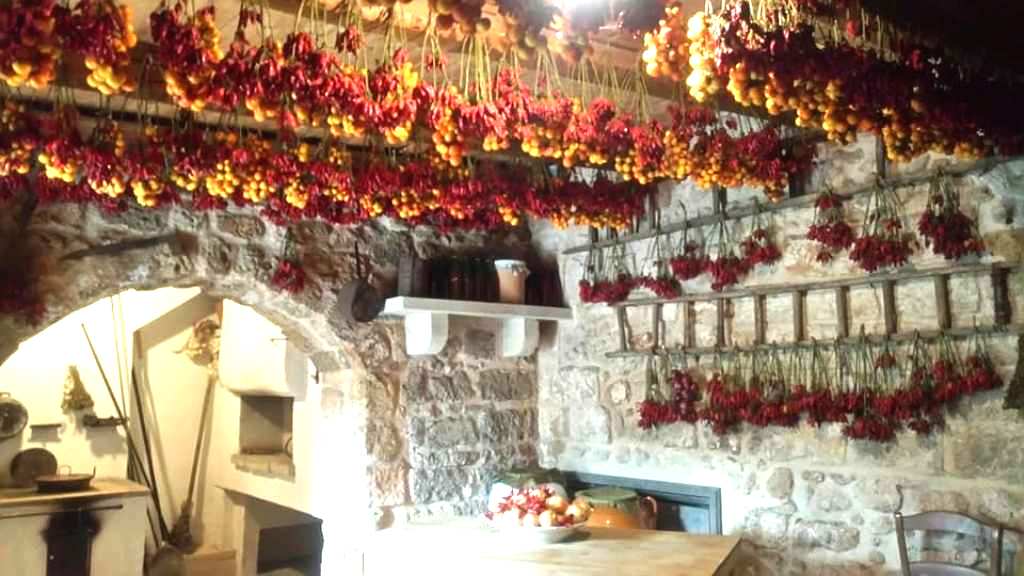 Η γοητευτική αυτή αγροικία, περιτριγυρισμένη από τις εύφορες εκτάσεις στην ευρύτερη περιοχή του Supersano, έχει ως έμβλημά της τις διάσημες ντοματούλες της Απουλίας «pennuli», οι οποίες κρέμονται κυριολεκτικά παντού, από την είσοδο έως τους εσωτερικούς χώρους του αγροκτήματος, προσδίδοντάς τους μια μοναδική ομορφιά με τα εντυπωσιακά χρώματά τους να παντρεύονται αρμονικά με αυτά από τις πιπεριές τσίλι, που επίσης στεγνώνουν κρεμασμένες από τις οροφές. Η εικόνα, άλλωστε, μιλάει από μόνη της!