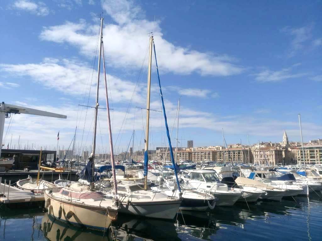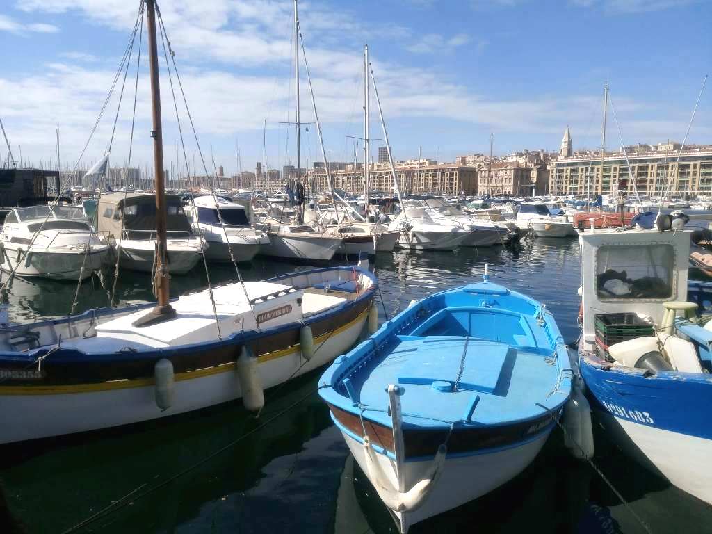 Παραδοσιακή βάρκα αραγμένη στη Μαρίνα της Μασσαλίας, ανάμεσα σε χιλιάδες κότερα και πολυτελή σκάφη.