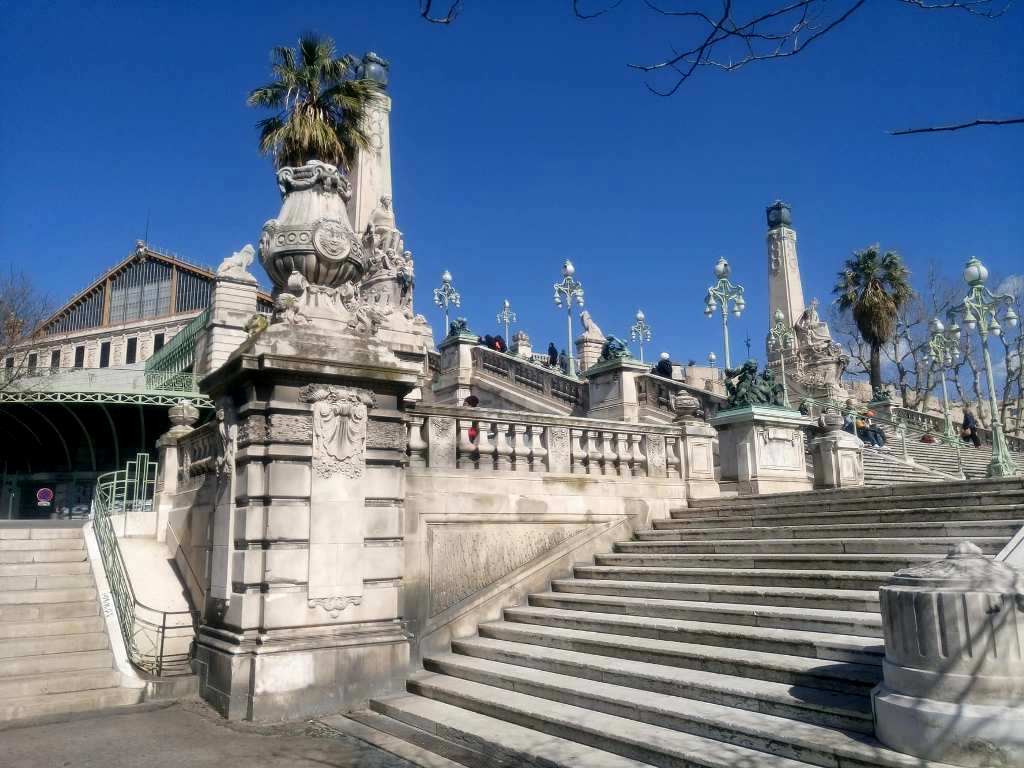 Άποψη της λεωφόρου Αθηνών (Boulevard d’ Athènes) από τον Σιδηροδρομικό Σταθμό του Saint-Charles και την μεγάλη εντυπωσιακή σκάλα που οδηγεί προς το κέντρο της πόλης.