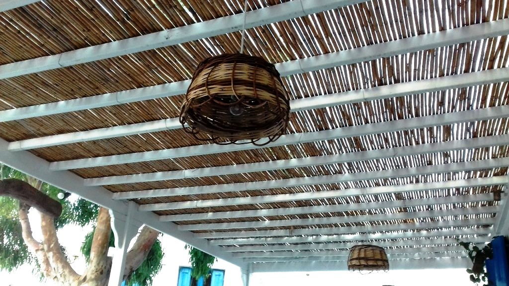 …και την κάθε διακοσμητική λεπτομέρεια να σέβεται την ταυτότητα του χώρου που βρίσκεται, όπως η καλαμωτή, που σχεδιάζει τα ατελείωτα ριγέ σχέδια της σε συνεργασία με το εκτυφλωτικό φως του αιγαιοπελαγίτικου ήλιου.
