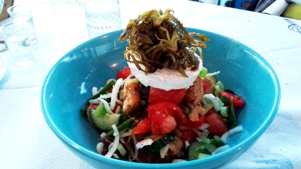 Χορταστική σαλάτα «Άγονη Γραμμή» με πρωταγωνιστές τοπικά προϊόντα του νησιού.
