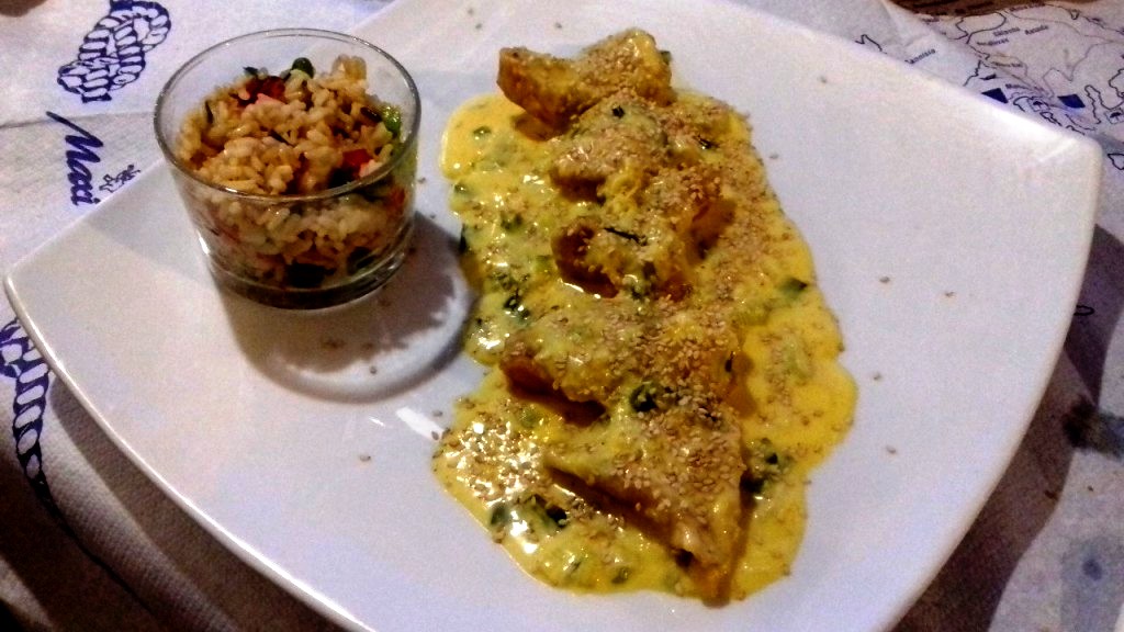 Φιλετάκια κοτόπουλου με πλούσια σάλτσα αρωματισμένη με τζίντζερ, πορτοκάλι και μέλι.