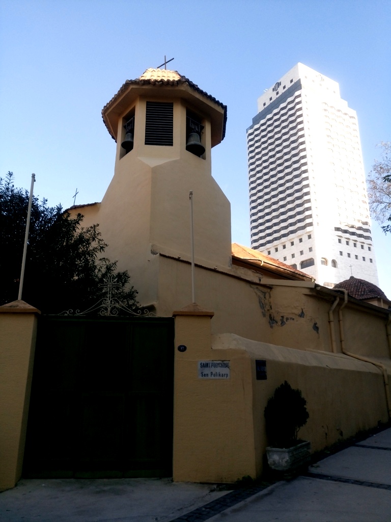 Ευκαιρίας δοθείσης να πούμε ότι στην σκιά του Hilton, βρίσκεται η καθολική εκκλησία του Αγίου Πολυκάρπου, που χτίστηκε το 1625 με την άδεια του Οθωμανού Σουλτάνου Σουλεϊμάν Α ‘ και κατόπιν αιτήματος του Γάλλου Βασιλιά Λουδοβίκου ΧΙΙΙ. Ο ναός υπέστη ζημιές κατά τον σεισμό της Σμύρνης το 1688 και τη φωτιά που ξέσπασε τους επόμενους μήνες και επισκευάστηκε την περίοδο 1690 – 1691.