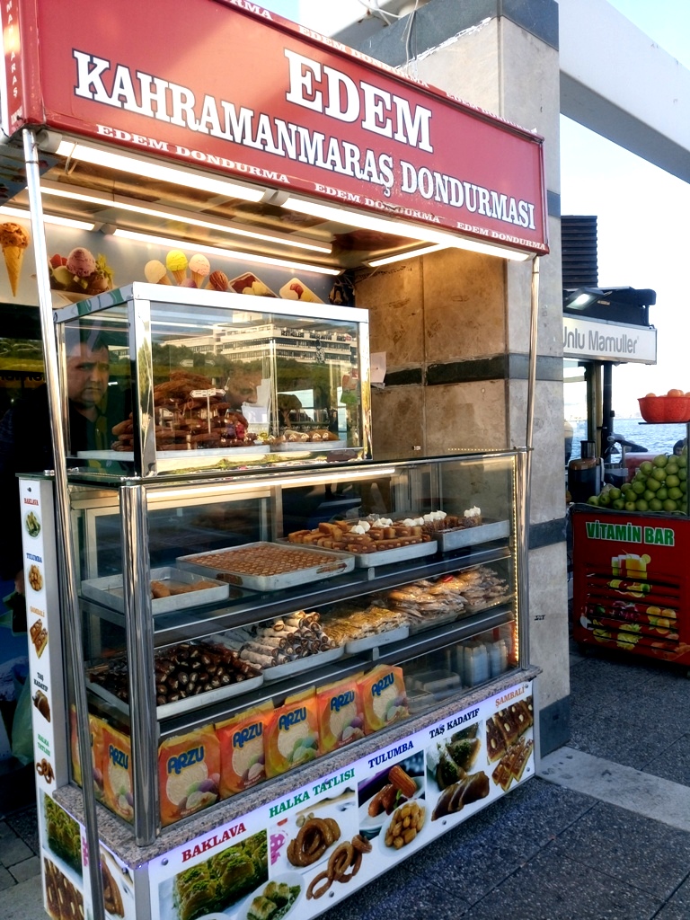 …ενώ για τη συνέχεια ενδείκνυται ένα παγωτό καϊμάκι, ένας μπακλαβάς, μια τουλούμπα, ένα κανταΐφι, ένα sambali ή ρεβανί αν προτιμάτε ή ακόμα μερικά halka tatlisi, τα τουρκικά γλυκά churros θα μπορούσαμε να πούμε, ένα από τα πιο αγαπημένα γλυκά του δρόμου στην Τουρκία, που στην ουσία δεν είναι παρά τηγανητή ζύμη σε σχήμα δαχτυλιδιού, βυθισμένη σε γλυκό σιρόπι.