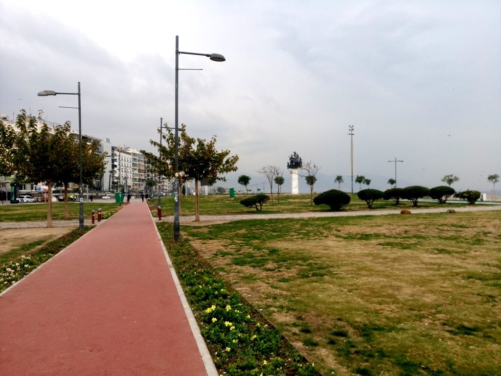 …αλλά και για ρεμβασμό δίπλα στην θάλασσα, με θέα τις βόρειες ακτές του κόλπου της Σμύρνης (στο βάθος της φωτογραφίας), εκεί όπου βρίσκονται οι συνοικίες Αγία Τριάδα, Μπαϊρακλί και στο άκρο το Κορδελιό (Karşıyaka).